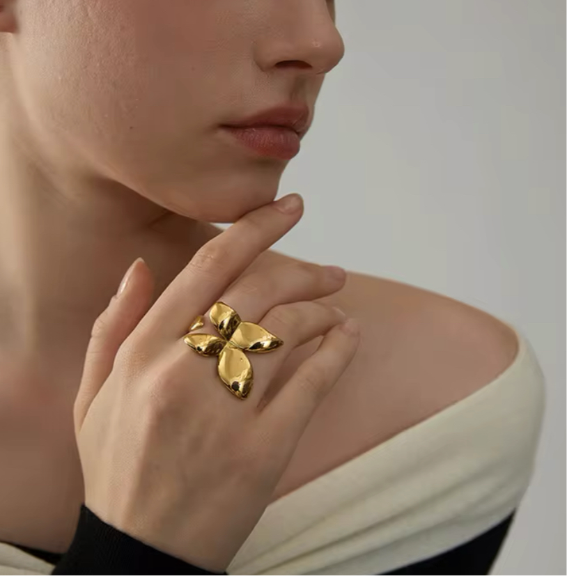 The Butterfly Ring is a versatile piece that adds a touch of elegance to any outfit. With its chunky and open design, it is suitable for any occasion. Crafted with quality materials, it is durable and long-lasting.